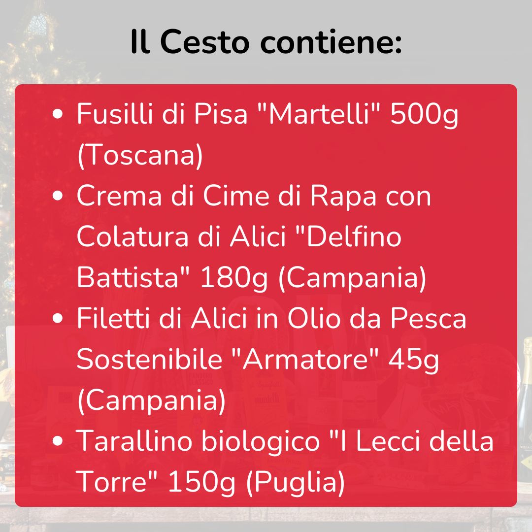 "Cima d'Oro" Christmas basket - Fusilli with turnip tops, anchovy sauce and crunchy crumbs - Recipe box