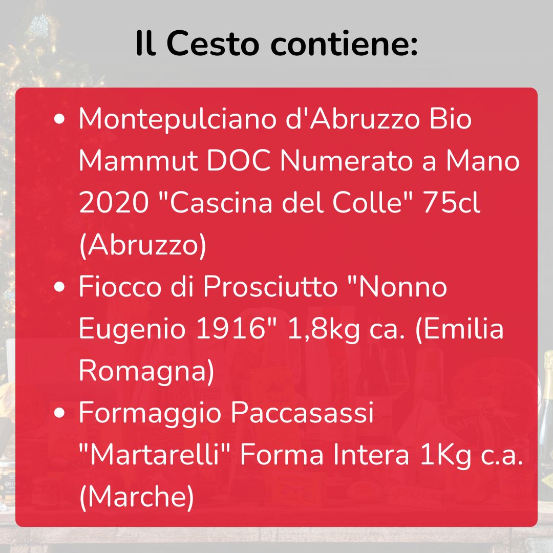 Cesto di Natale "Paccasassi" - Montepulciano d'Abruzzo Bio, Fiocco di Prosciutto e Caciotta