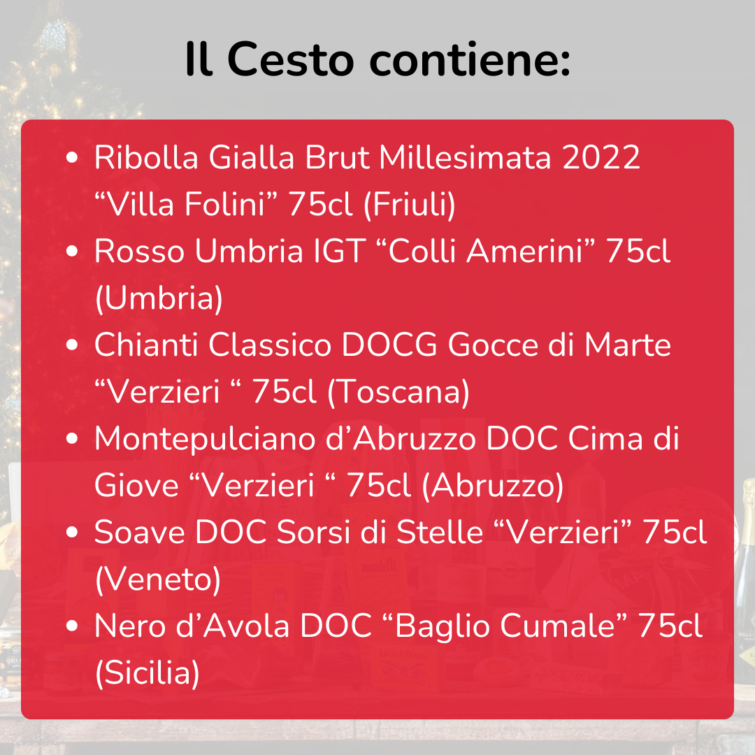 Cesto di Natale vini "Mrs. Claus" - 6 bottiglie rossi, bianchi e bollicina